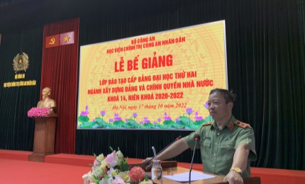 Chiều ngày 17/10/2022, Học viện Chính trị CAND long trọng tổ chức Lễ bế giảng Lớp đào tạo cấp bằng đại học thứ hai, ngành xây dựng đảng và chính quyền nhà nước, khoá 14, niên khoá 2020 - 2022 tổ chức tại Học viện. Đồng chí Trung tướng, PGS.TS Phan Xuân Tuy, Bí thư Đảng ủy, Giám đốc Học viện chủ trì buổi Lễ. Tham dự buổi lễ có đại diện lãnh đạo các đơn vị thuộc Học viện cùng toàn thể học viên khóa học.