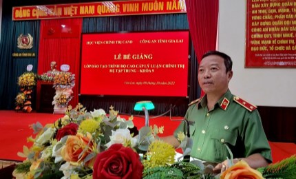 Ngày 08/10/2022, tại Công an tỉnh Gia Lai, Học viện Chính trị CAND tổ chức Lễ Bế giảng lớp đào tạo cao cấp lý luận chính trị, hệ tập trung - khóa 9 mở tại Công an tỉnh. Đồng chí Trung tướng, PGS.TS Phan Xuân Tuy, Bí thư Đảng ủy, Giám đốc Học viện Chính trị CAND và Trung tá Ksor H’Bơ Khăp, Ủy viên Ban Thường vụ Đảng ủy, Phó Giám đốc Công an tỉnh Gia Lai đồng chủ trì buổi lễ.
