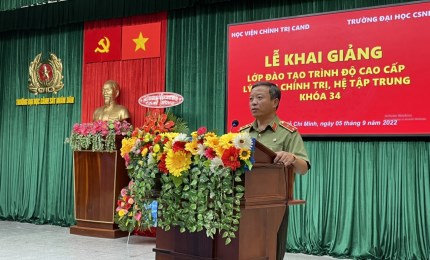Chiều ngày 05/9/2022, Học viện Chính trị CAND chủ trì, phối hợp với Trường Đại học Cảnh sát nhân dân tổ chức Lễ khai giảng lớp đào tạo trình độ cao cấp LLCT, hệ tập trung - Khóa 34 mở tại Trường Đại học Cảnh sát nhân dân. Đồng chí Trung tướng, PGS.TS Phan Xuân Tuy, Bí thư Đảng ủy, Giám đốc Học viện chủ trì buổi Lễ. Tham dự buổi Lễ còn có đồng chí Đại tá, PGS.TS Nguyễn Giang Nam, Ủy viên Ban Thường vụ, Phó Hiệu trưởng Trường Đại học Cảnh sát nhân dân; đại diện các đơn vị chức năng thuộc Học viện Chính trị CAND, Trường Đại học Cảnh sát nhân dân cùng toàn thể học viên khóa học.