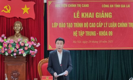 Ngày 29/10/2021, Học viện Chính trị Công an nhân dân phối hợp với Công an tỉnh Gia Lai tổ chức Lễ Khai giảng Lớp Đào tạo cao cấp lý luận chính trị hệ tập trung khóa 9 theo hình thức trực tuyến cho 50 đồng chí là lãnh đạo, chỉ huy các đơn vị đang công tác tại Công an tỉnh Gia Lai, Phú Yên và Đắk Lắk.
