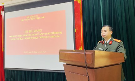Ngày 24/12/2021, Học viện Chính trị CAND tổ chức Lễ Bế giảng lớp đào tạo trình độ cao cấp lý luận chính trị, hệ tập trung tổ chức tại Học viện. Đồng chí Trung tướng, PGS.TS Trần Vi Dân, Ủy viên Hội đồng lý luận trung ương, Bí thư Đảng ủy, Giám đốc Học viện Chính trị CAND chủ trì buổi Lễ. Tham dự Lễ Bế giảng có đại diện đơn vị chức năng của Cục Đào tạo; đại diện lãnh đạo các đơn vị chức năng thuộc Học viện cùng 50 học viên lớp học.