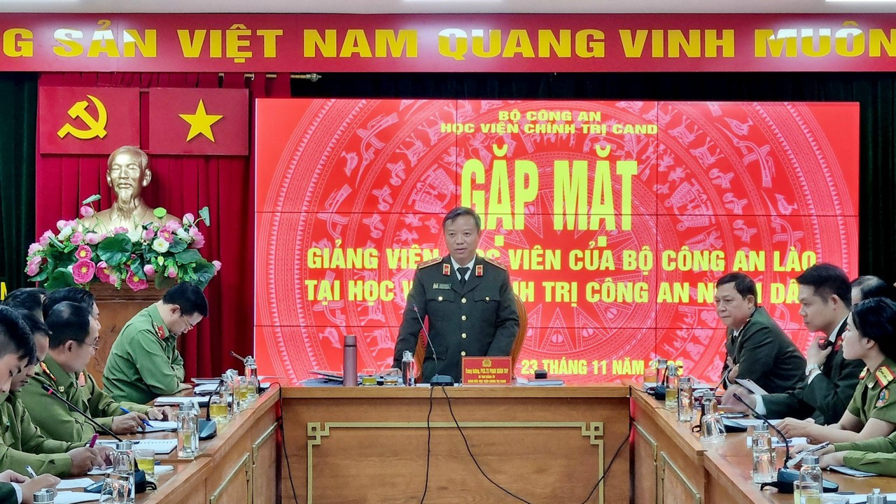 Phát biểu tại buổi gặp mặt, đồng chí Giám đốc Học viện ôn lại truyền thống tốt đẹp giữa hai Đảng, hai Nhà nước, giữa Bộ Công an Việt Nam và Bộ Công an Lào. Đặc biệt là truyền thống của Học viện Chính trị CAND trong đào tạo cán bộ cho nước bạn Lào và nhấn mạnh: "trong năm học vừa qua, tập thể học viên Lào đã có nhiều cố gắng, nỗ lực khắc phục khó khăn, giành được nhiều thành tích trong học tập, rèn luyện. Học viện mong muốn học viên Lào cùng với học viên Việt Nam thi đua học tập tốt, tích cực rèn luyện để trở thành những cán bộ có bản lĩnh chính trị, năng lực nghiệp vụ vững vàng để khi trở về nước sẽ góp phần vào sự nghiệp bảo vệ an ninh quốc gia của mình". Đồng chí Giám đốc Học viện chúc tình đoàn kết đặc biệt giữa hai đất nước Việt Nam - Lào mãi mãi xanh tươi, đời đời bền vững.
