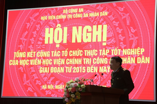 Phát biểu chỉ đạo Hội nghị, đồng chí Thiếu tướng Dương Như Hồng, Phó Giám đốc Học viện đã quán triệt mục tiêu, yêu cầu tổ chức Hội nghị; đồng thời nhấn mạnh tầm quan trọng của thực tập tốt nghiệp, đây là hoạt động giúp học viên bổ sung, củng cố kiến thức đã được trang bị trong quá trình học tập vào thực tiễn công tác bảo vệ an ninh quốc gia, giữ gìn trật tự an toàn xã hội; giúp học viên có thể thích ứng ngay được công tác của đơn vị sau khi ra trường. Đồng thời, đề nghị Hội nghị tập trung thảo luận đánh giá quá trình tổ chức công tác thực tập tốt nghiệp của Học viện từ năm 2015 đến nay và đề xuất các giải pháp nhằm đổi mới, nâng cao chất lượng hoạt động thực tập tốt nghiệp của học viên như cách thức tổ chức, nội dung, thời gian, địa bàn thực tập; việc đánh giá kết quả thực tập, rèn luyện của học viên trong quá trình thực tập; kinh phí tổ chức thực tập tốt nghiệp; chế độ chính sách đối với cán bộ, giảng viên hướng dẫn và của học viên.