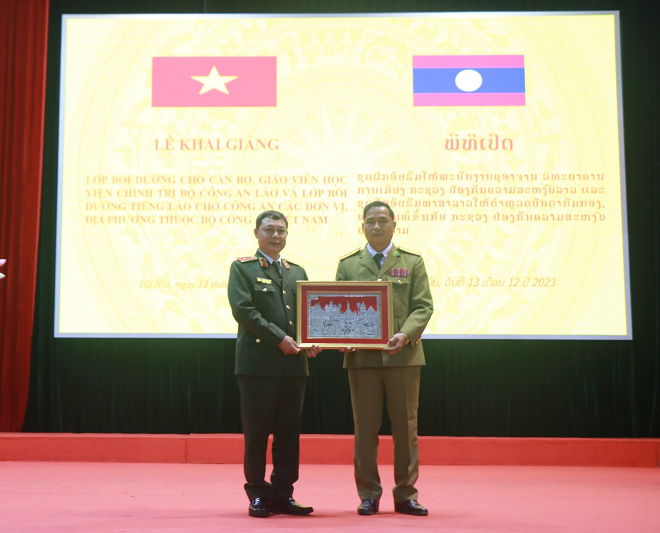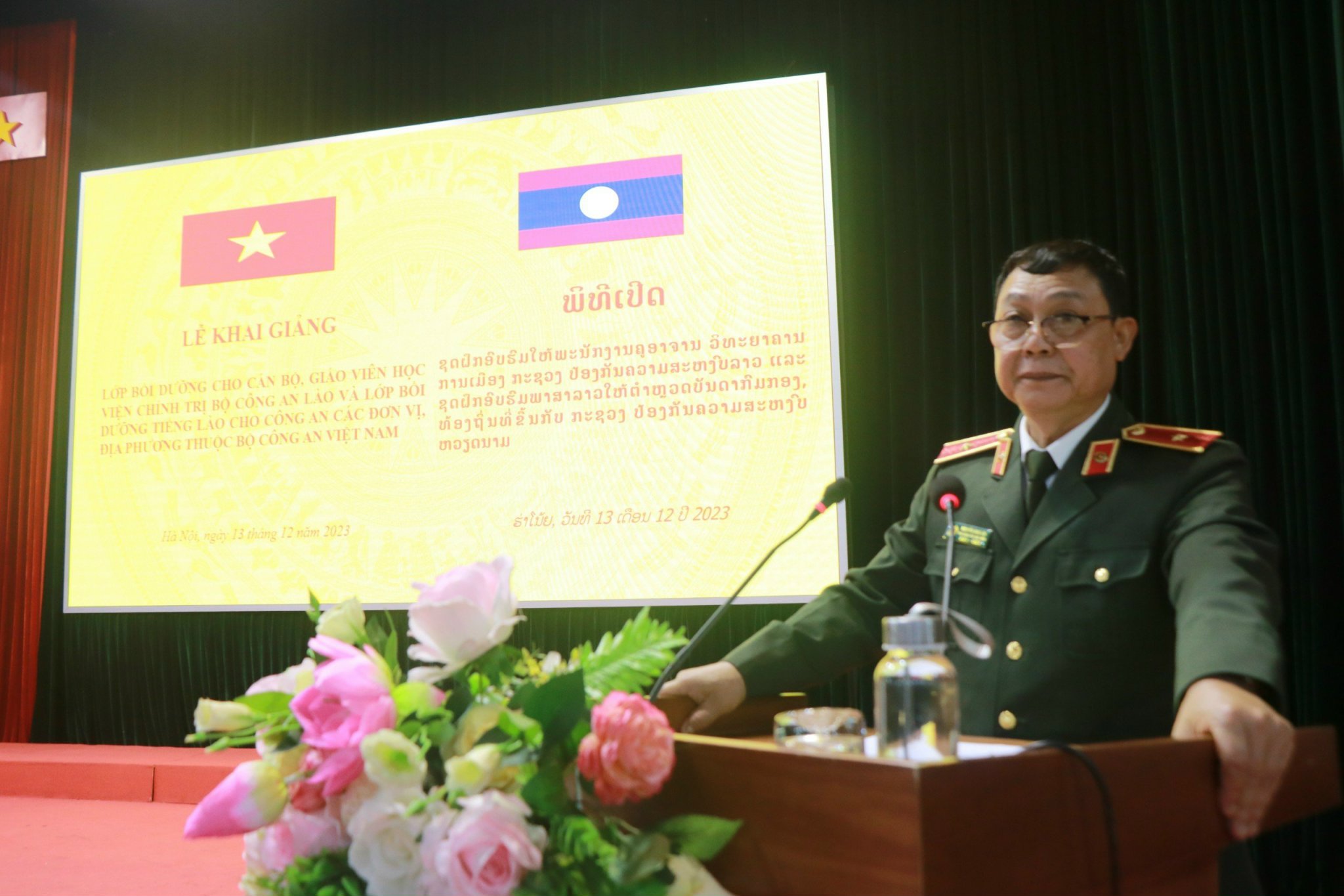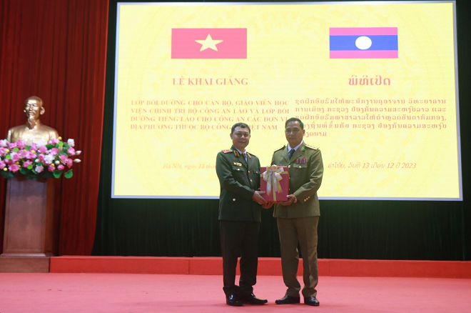 Thực hiện Kế hoạch Bộ Công an giao Học viện Chính trị CAND tổ chức các lớp bồi dưỡng cho cán bộ, giảng viên Học viện Chính trị Công an Lào và các lớp bồi dưỡng tiếng Lào cho công an các đơn vị, địa phương của Bộ Công an Việt Nam, ngày 13/12/2023, Học viện Chính trị CAND trang trọng tổ chức lễ khai giảng các lớp bồi dưỡng trên.