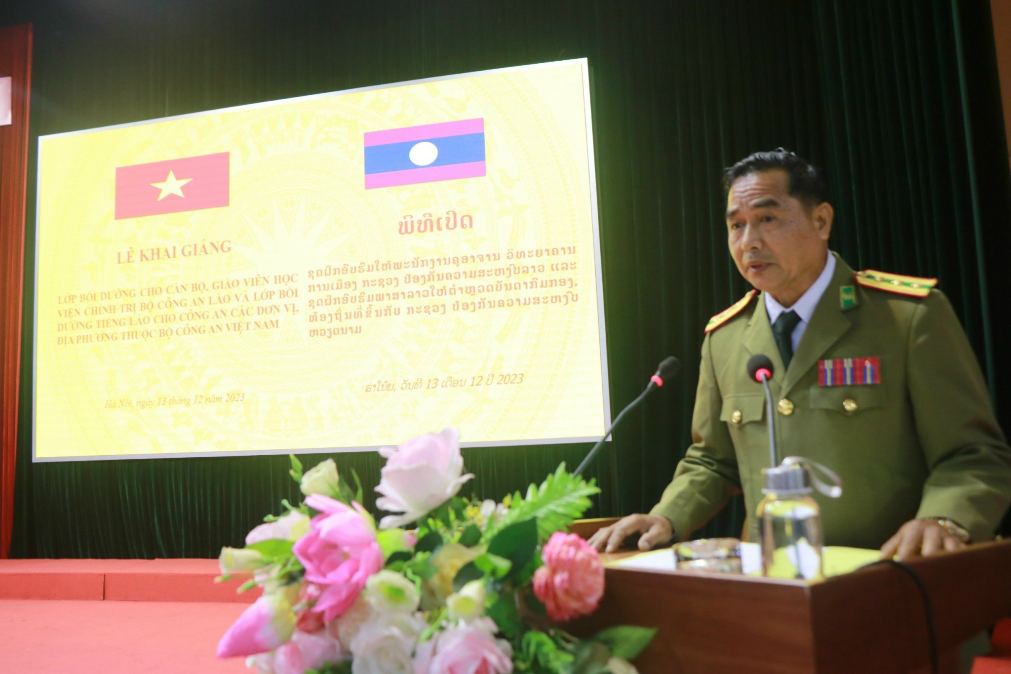 Đồng chí Thiếu tướng Nguyễn Như Lôi, Ủy viên Ban thường vụ Đảng ủy, Phó Giám đốc Học viện chủ trì lễ khai giảng. Tham dự lễ khai giảng có đồng chí Đại tá Khon-sỉ Nao-vạ-lạt, Trưởng Cơ quan đại diện Bộ Công an Lào tại Việt Nam; đồng chí Đại tá Đặng Thu Hiền, Phó Cục trưởng Cục Đào tạo, Bộ Công an, đại diện phòng chức năng thuộc Cục Đào tạo, Cục Đối ngoại, cùng các đồng chí đại diện lãnh đạo Khoa, Phòng thuộc Học viện Chính trị CAND.