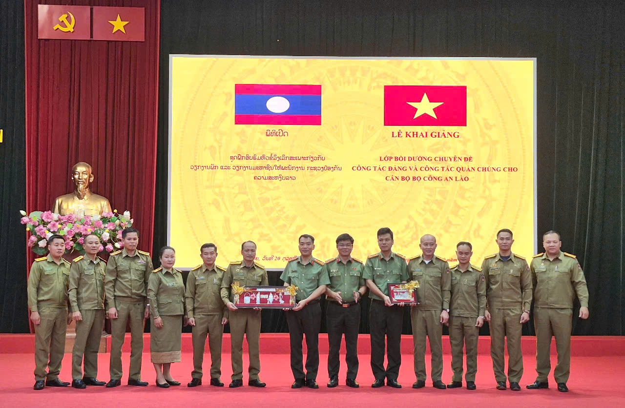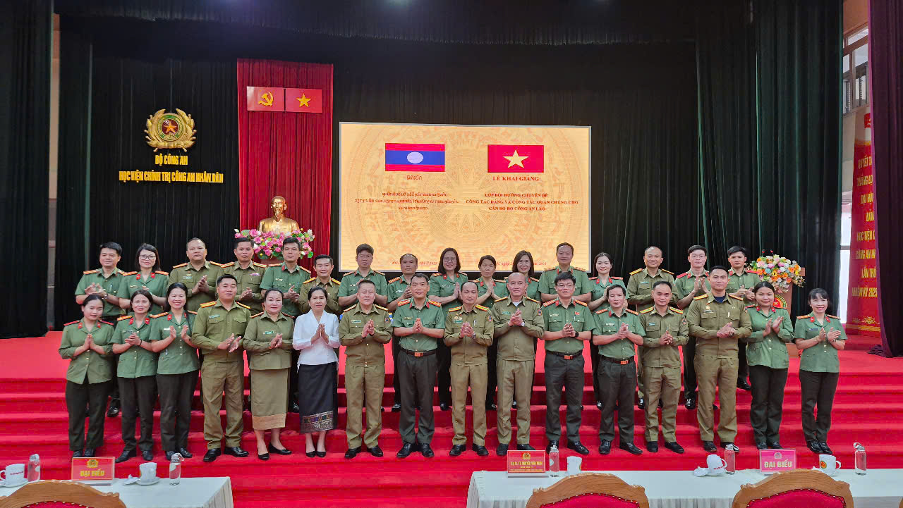 Thực hiện Kế hoạch hợp tác giữa Bộ Công an Việt Nam với Bộ Công an Lào, ngày 20/10/2025, Học viện Chính trị CAND tổ chức Lễ Khai giảng lớp bồi dưỡng chuyên đề công tác Đảng, công tác quần chúng dành cho cán bộ Bộ Công an nước Cộng hòa Dân chủ Nhân dân Lào. Đồng chí TS, Đại tá Nguyễn Văn Tuấn, Ủy viên Ban Thường vụ Đảng ủy, Phó Giám đốc Học viện chủ trì buổi Lễ. Dự Lễ Khai giảng có đồng chí Đại tá Khon - sỉ Nao - va - lạt, Trưởng Cơ quan đại diện Bộ Công an Lào tại Việt Nam và phu nhân, đại diện lãnh đạo đơn vị chức năng thuộc Học viện và toàn thể học viên lớp bồi dưỡng.