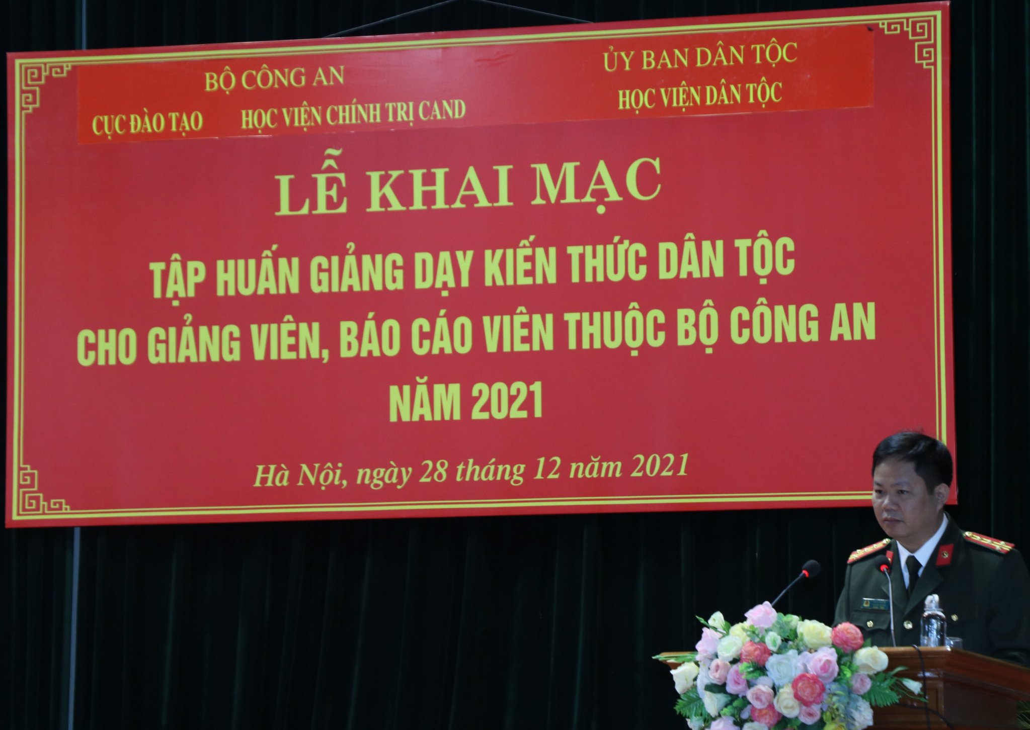 Ngày 28/12/2021, tại Học viện Chính trị Công an nhân dân, Cục Đào tạo đã phối hợp với Học viện Dân tộc tổ chức Lễ Khai giảng Lớp Tập huấn giảng dạy kiến thức dân tộc cho giảng viên, báo cáo viên thuộc Bộ Công an năm 2021.