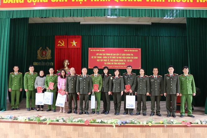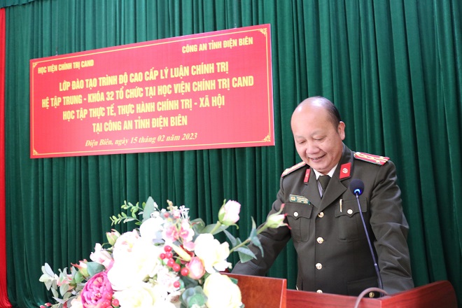 Thực hiện chương trình đào tạo và Kế hoạch số 107/KH-T03-P3, ngày 17/01/2023 của Giám đốc Học viện Chính trị Công an nhân dân về việc tổ chức đi học tập thực tế, thực hành chính trị - xã hội cho lớp đào tạo trình độ cao cấp lý luận chính trị, hệ tập trung - Khóa 32, từ ngày 14/02/2023 đến ngày 16/02/2023, Học viện Chính trị Công an nhân dân đã phối hợp với Công an tỉnh Điện Biên tổ chức cho lớp đào tạo trình độ cao cấp lý luận chính trị, hệ tập trung - Khóa 32 đi học tập thực tế, thực hành chính trị - xã hội tại Công an tỉnh Điện Biên. Đồng chí Trung tướng, PGS.TS Phan Xuân Tuy, Bí thư Đảng ủy, Giám đốc Học viện Chính trị Công an nhân dân làm Trưởng đoàn. Tham gia Đoàn còn có đại diện lãnh đạo Phòng Quản lý đào tạo và bồi dưỡng nâng cao, Văn phòng Học viện, Phòng Quản lý học viên, cán bộ quản lý đào tạo, giáo viên chủ nhiệm lớp và 46 học viên của lớp.
