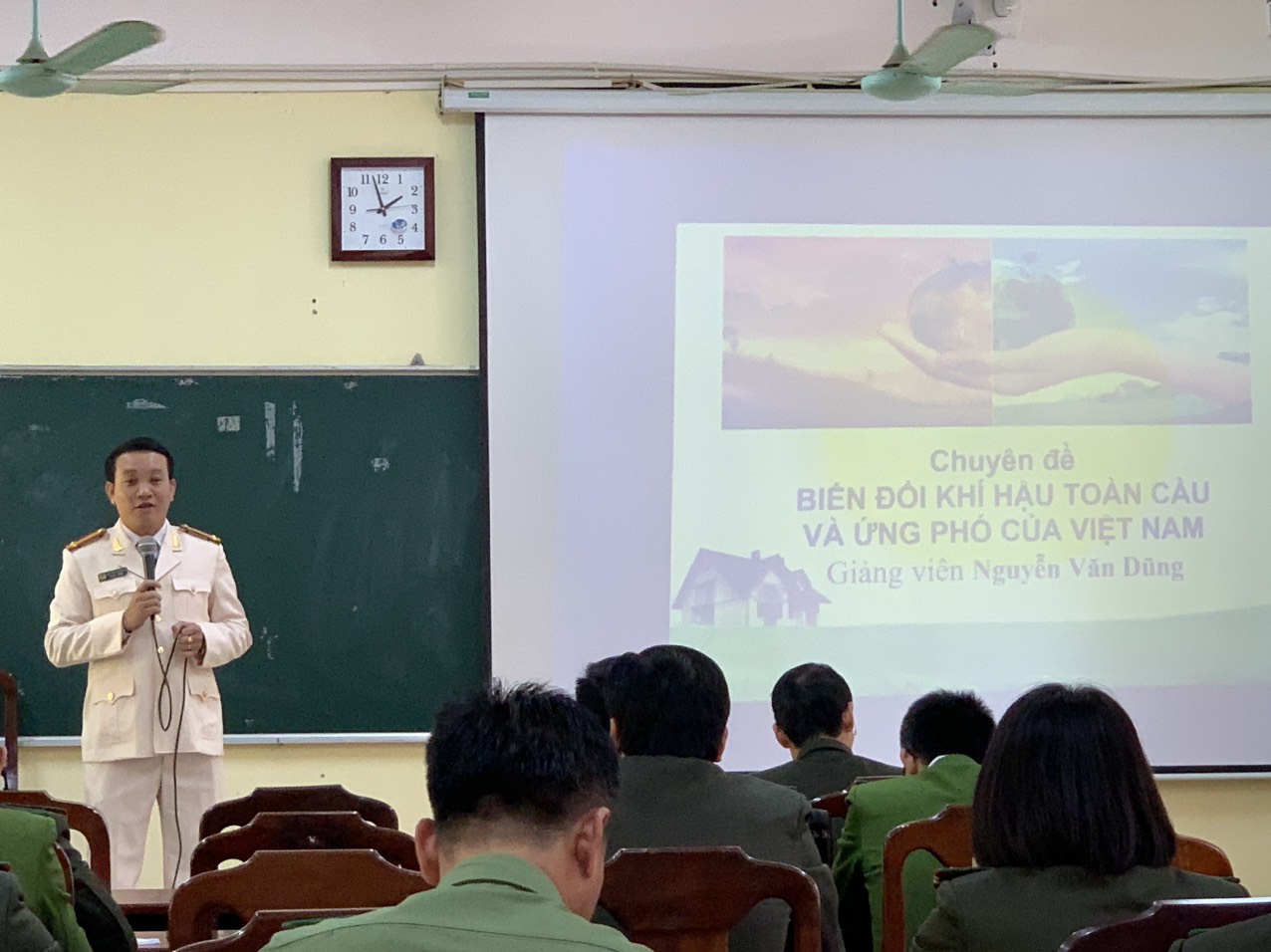 Trung tá Nguyễn Văn Dũng, giảng viên Khoa Kinh tế chính trị thực hiện Thao giảng