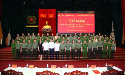 Thực hiện Kế hoạch số 859/KH-T03-P3, ngày 18/4/2023 của Học viện Chính trị CAND về việc tổ chức Lễ Bế giảng lớp đào tạo trình độ cao cấp LLCT, hệ tập trung Khóa 17 tổ chức tại Công an tỉnh Thái Nguyên dành cho cán bộ đang công tác tại Công an tỉnh Thái Nguyên và Trại giam Phú Sơn 4, C10, sáng ngày 21/4/2023, Học viện phối hợp với Công an tỉnh Thái Nguyên tổ chức Lễ bế giảng khóa học.
