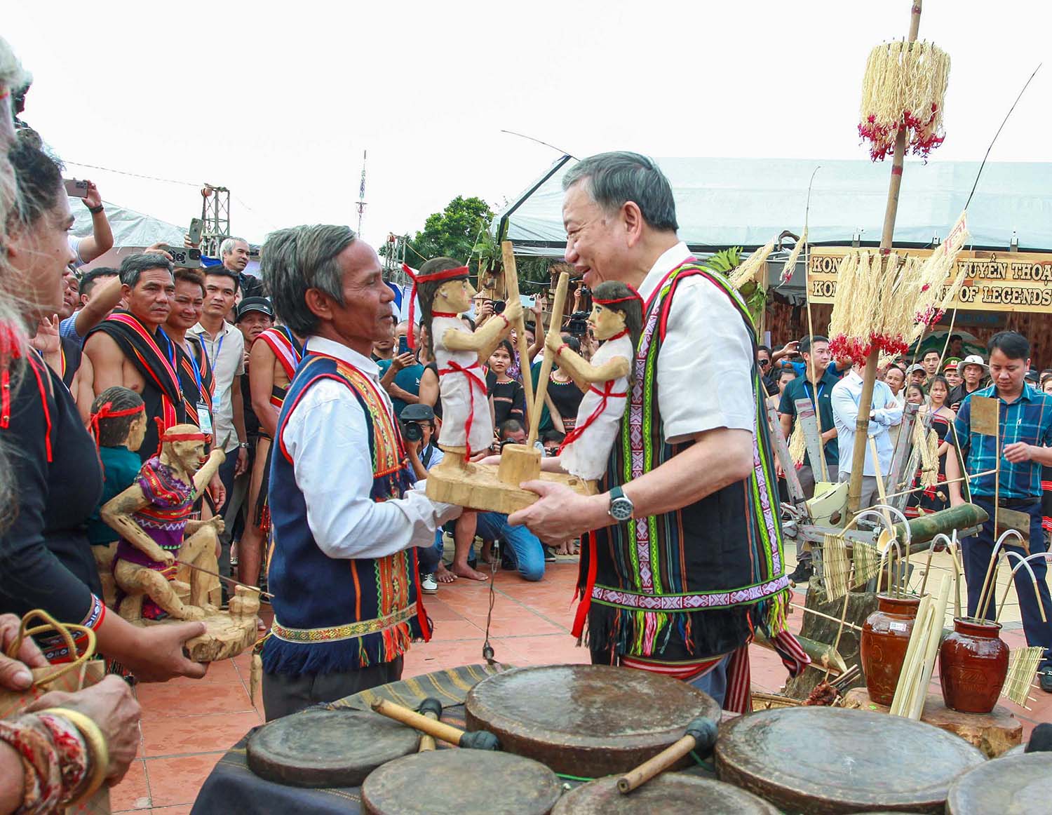 Đại tướng Tô Lâm, Ủy viên Bộ Chính trị, Bộ trưởng Bộ Công an dự Ngày hội Văn hoá, thể thao và du lịch các dân tộc vùng Tây Nguyên lần thứ I, năm 2023 _Nguồn: baokontum.com.vn