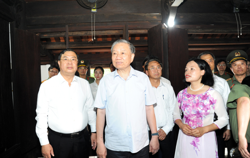Đồng chí Trung tướng, PGS, TS Phan Xuân Tuy, Bí thư Đảng ủy, Giám đốc Học viện Chính trị Công an nhân dân tham gia Đoàn đại biểu dâng hương Tổng Bí thư Trường Trinh trước buổi tổ chức hội thảo