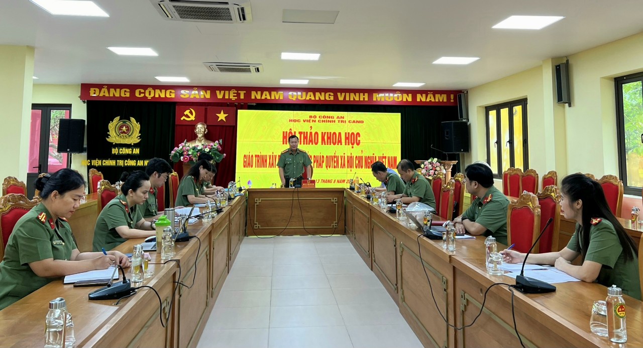 Thực hiện Chương trình công tác nghiên cứu khoa học năm học 2023 - 2024 của Học viện Chính trị Công an nhân dân, sáng ngày 13/8/2024, Học viện Chính trị Công an nhân dân đã tổ chức Hội thảo khoa học hoàn thiện bản thảo Giáo trình “Xây dựng Nhà nước pháp quyền xã hội chủ nghĩa Việt Nam”, dùng cho hệ đào tạo trình độ đại học, ngành Xây dựng Đảng và chính quyền nhà nước.