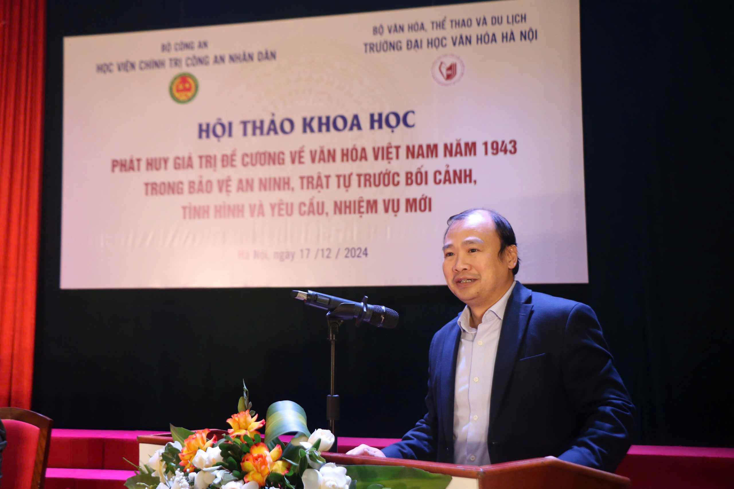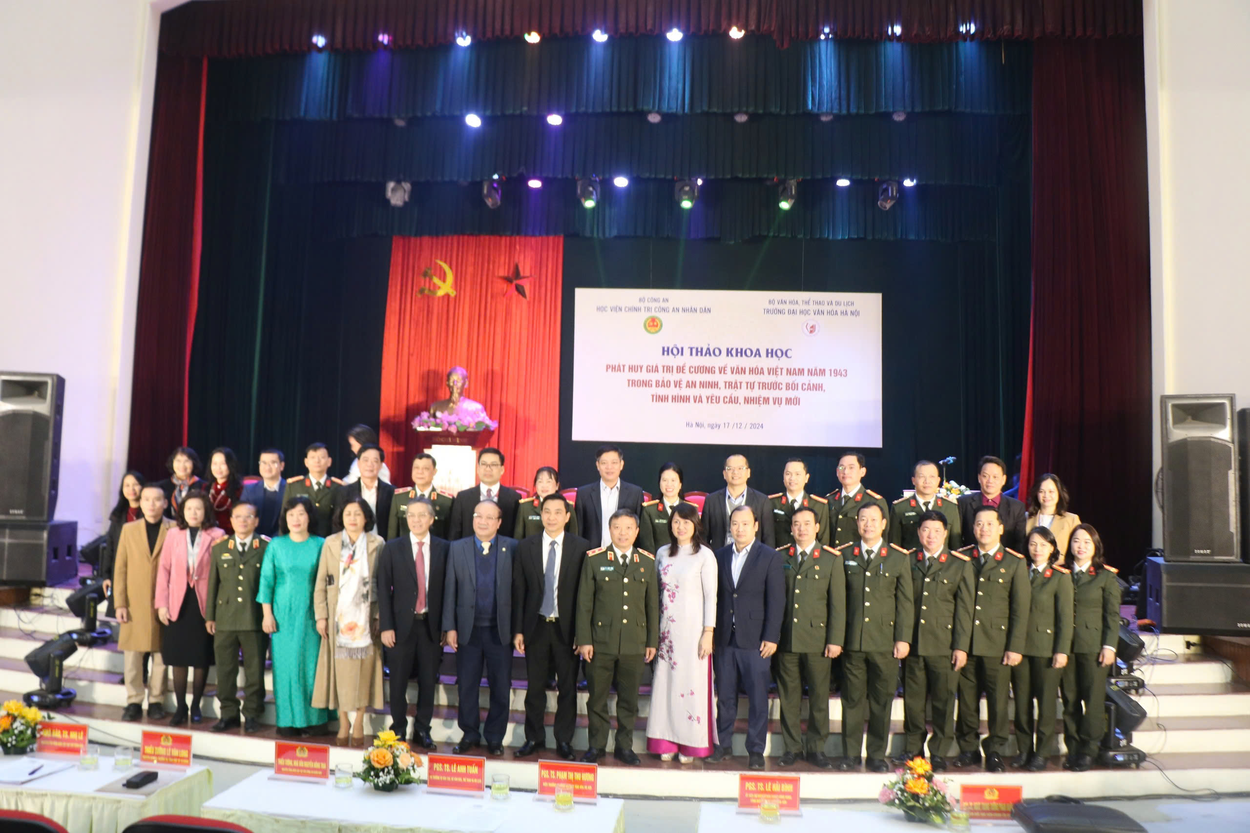 Sáng 17-12, tại trường Đại học Văn hóa Hà Nội, Học viện Chính trị Công an nhân dân phối hợp với Đại học Văn hóa Hà Nội tổ chức Hội thảo khoa học với chủ đề “Phát huy giá trị Đề cương về văn hoá Việt Nam năm 1943 trong bảo vệ an ninh, trật tự trước bối cảnh, tình hình và yêu cầu nhiệm vụ mới”.