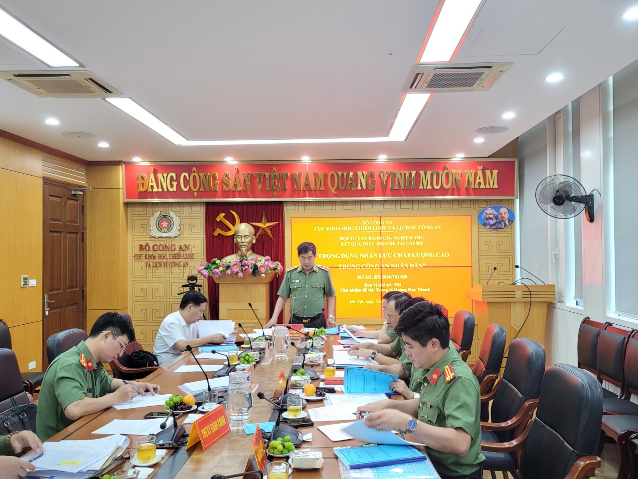 Ngày 24/6/2024, Hội đồng tư vấn đánh giá, nghiệm thu kết quả thực hiện đề tài cấp khoa học và công nghệ cấp bộ (Bộ Công an) do đồng chí Trung tướng, PGS.TS Trần Vi Dân, Bí thư Đảng ủy, Cục trưởng Cục Khoa học, Chiến lược và Lịch sử Công an làm Chủ tịch Hội đồng đã tổ chức họp đánh giá, nghiệm thu kết quả thực hiện đối với 02 Đề tài khoa học cấp bộ do Học viện Chính trị CAND chủ trì: “Trọng dụng nhân lực chất lượng cao trong Công an nhân dân” do Trung tá, TS Hoàng Huy Thành là Chủ nhiệm và đề tài “Địa chiến lược Việt Nam trong chính sách của các nước lớn và những vấn đề đặt ra đối với lợi ích, an ninh quốc gia Việt Nam” do Thượng tá, TS Nguyễn Đình Thiện làm Chủ nhiệm.