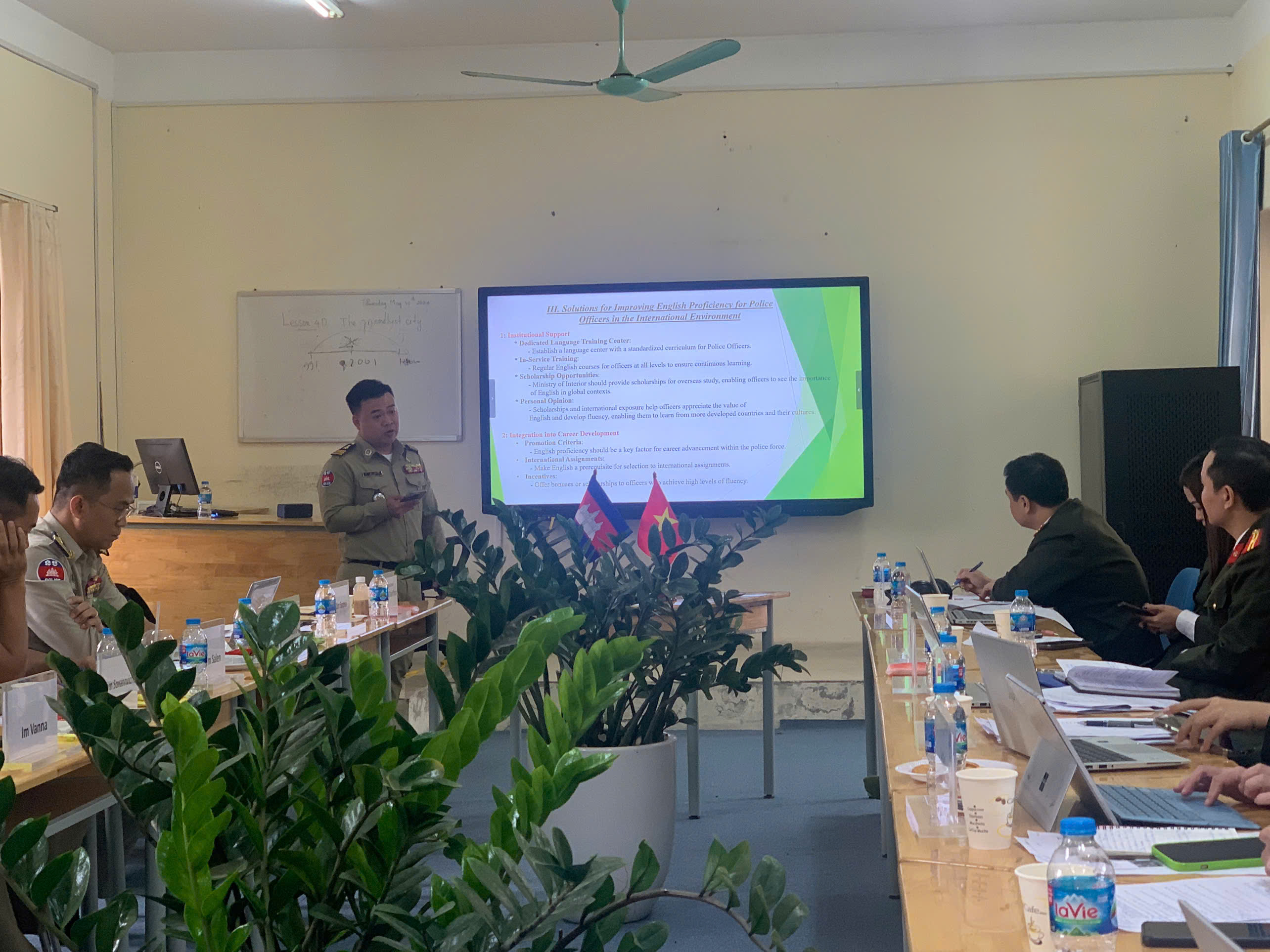 Thực hiện chủ trương chỉ đạo của Ban Giám đốc Học viện Chính trị CAND về đổi mới, nâng cao chất lượng đào tạo hệ đại học chính quy tại Học viện, tạo điều kiện cho giảng viên có thêm cơ hội trao đổi, học hỏi kinh nghiệm về tổ chức tọa đàm khoa học quốc tế. Ngày 13/12/2024, Khoa Ngoại ngữ - Tin học đã tổ chức Tọa đàm khoa học: Trao đổi kinh nghiệm đào tạo, học tập, sử dụng ngoại ngữ của lực lượng cảnh sát Campuchia đáp ứng yêu cầu nhiệm vụ, làm việc trong môi trường quốc tế”.