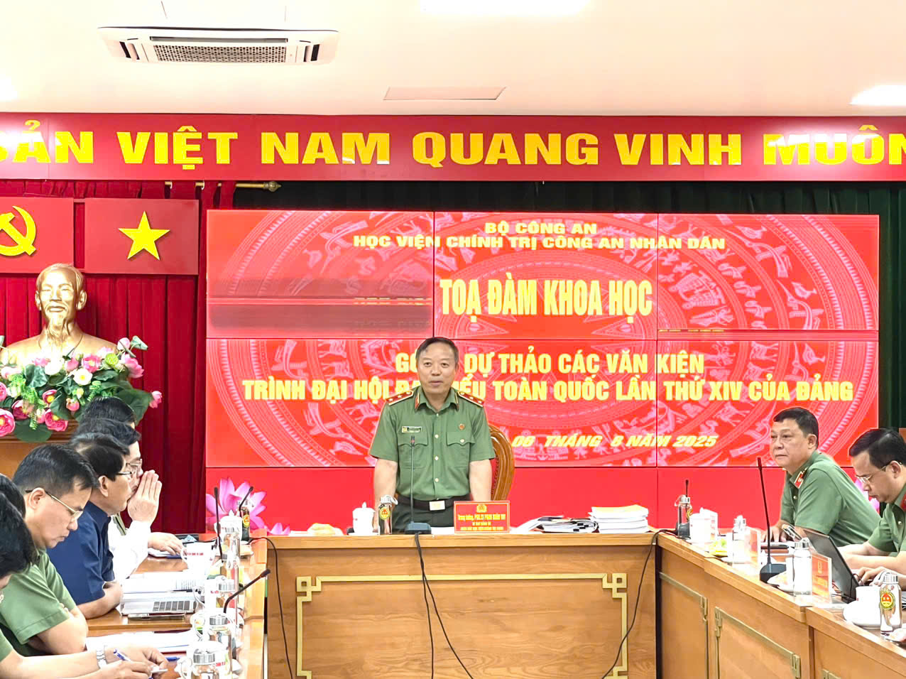 Căn cứ Chỉ thị số 45-CT/TW, ngày 14-4-2025 của Bộ Chính trị về Đại hội đảng bộ các cấp tiến tới Đại hội đại biểu toàn quốc lần thứ XIV của Đảng; Hướng dẫn số 90-HD/ĐUCA, ngày 16-1-2025 của Đảng ủy Công an Trung ương hướng dẫn thảo luận và tổng hợp ý kiến góp ý vào dự thảo văn kiện Đại hội XIV của Đảng và văn kiện đại hội đảng bộ cấp trên trực tiếp trong Đảng bộ Công an Trung ương và kế hoạch công tác năm 2025 của Hội đồng Lý luận Bộ Công an, ngày 06/8/2025, tại Học viện Chính trị Công an nhân dân, Tiểu ban Lý luận chính trị và xây dựng lực lượng Công an nhân dân tổ chức tọa đàm khoa học: “Góp ý dự thảo các văn kiện trình Đại hội đại biểu toàn quốc lần thứ XIV của Đảng”. Việc góp ý dự thảo các văn kiện trình Đại hội đại biểu toàn quốc lần thứ XIV của Đảng có ý nghĩa vô cùng quan trọng, không chỉ thể hiện tinh thần dân chủ trong Đảng, phát huy trí tuệ tập thể, là cơ hội để cán bộ, đảng viên và Nhân dân tham gia đóng góp vào sự phát triển của đất nước; góp ý giúp văn kiện được hoàn thiện, phản ánh sát thực tình hình thực tế, đáp ứng tốt hơn yêu cầu phát triển của đất nước, đồng thời thể hiện sự kế thừa, phát huy những thành tựu đã đạt được, đồng thời đổi mới, sáng tạo trong tư duy và hành động.