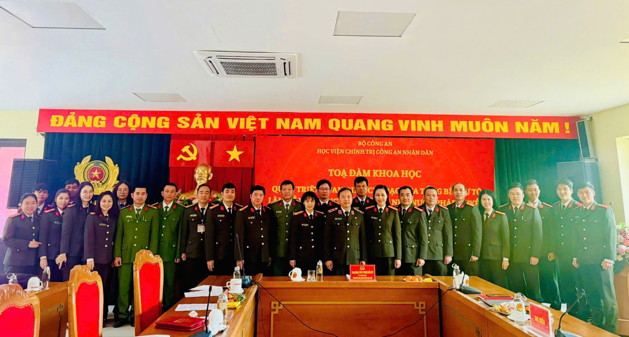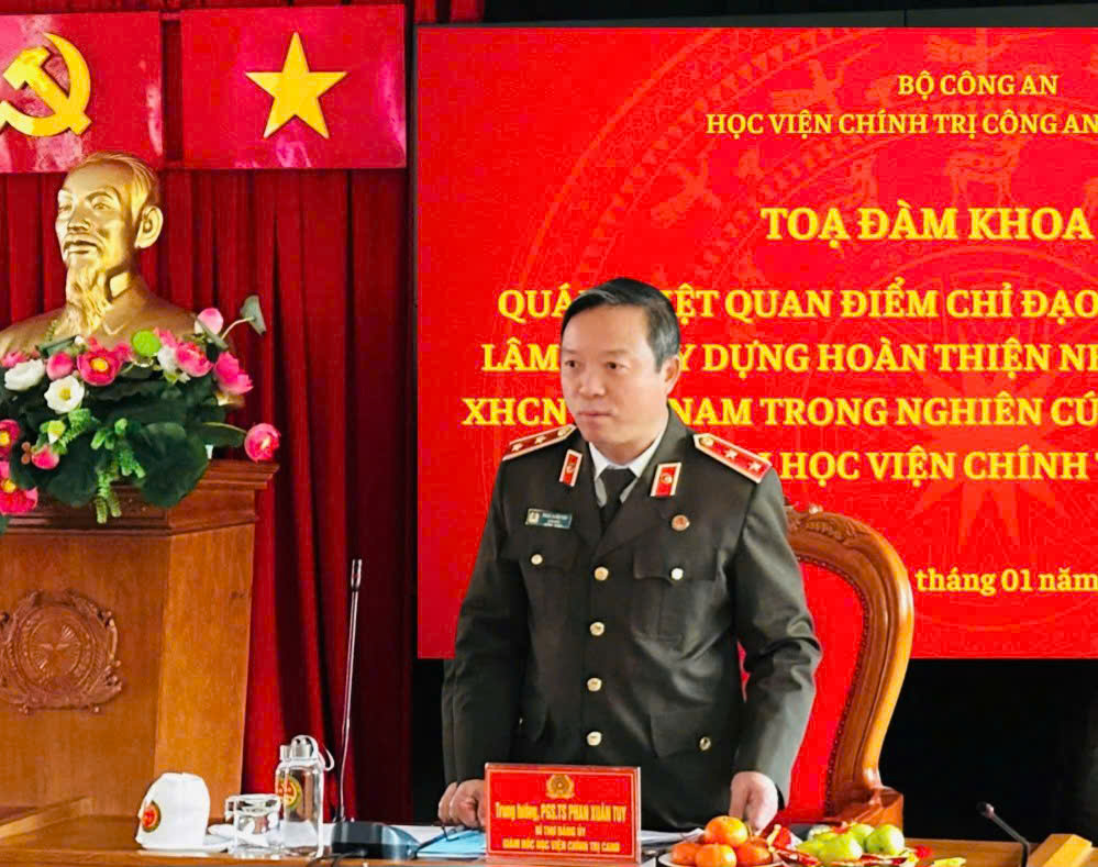 Thực hiện chương trình, kế hoạch công tác năm học 2024-2025, triển khai các hoạt động nghiên cứu khoa học và công nghệ, ngày 14/01/2025 tại Học viện Chính trị Công an nhân dân tổ chức Tọa đàm khoa học “Quán triệt quan điểm chỉ đạo của Tổng Bí thư Tô Lâm về xây dựng và hoàn thiện Nhà nước pháp quyền xã hội chủ nghĩa Việt Nam trong nghiên cứu, giảng dạy, học tập tại Học viện Chính trị Công an nhân dân”. Đồng chí PGS, TS, Trung tướng Phan Xuân Tuy, Ủy viên Hội đồng Lý luận Bộ Công an, Bí thư Đảng uỷ, Giám đốc Học viện Chính trị Công an chủ trì Tọa đàm khoa học.