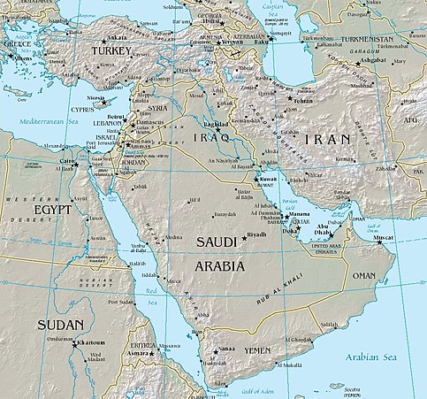 Trung Đông là thuật ngữ chỉ bộ phận khu vực từ phía đông và phía nam Địa Trung Hải đến ven sát bờ vịnh Ba Tư. Về địa lí, Trung Đông bao gồm Tây Á (trừ Ngoại Kavkaz) và Ai Cập, là khu vực nối liền giữa châu Phi và lục địa Á - Âu. Khu vực này được hiểu bao gồm 17 quốc gia, có diện tích khoảng 7,2 triệu km2 và dân số khoảng 371 triệu người. Các nước Trung Đông bao gồm: Arabia Saudi, Iran, Iraq, Kuwait, Các Tiểu vương quốc Ả Rập Thống nhất, Oman, Qatar, Bahrain, Thổ Nhĩ Kỳ, Israel, Palesstine, Syria, Lebannon, Jordan, Yemen, Cyprus và Ai Cập.
