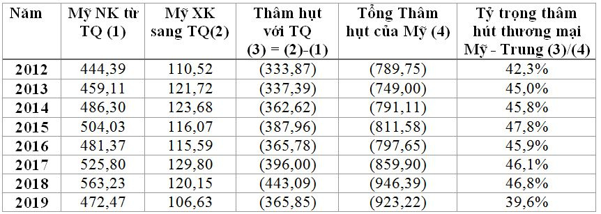 Bảng 1. Thâm hụt thương mại Mỹ - Trung Quốc