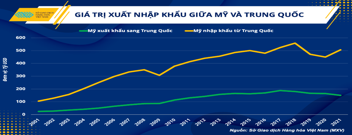 Giá trị xuất nhập khẩu giữa Mỹ và Trung Quốc giai đoạn 2001-2021