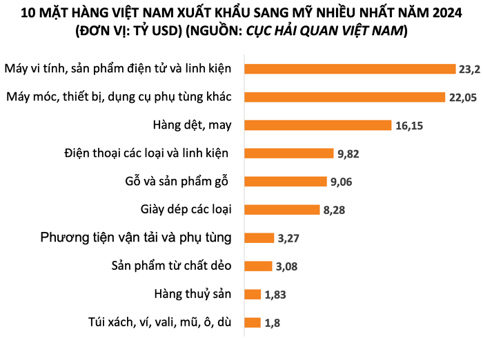 10 mặt hàng Việt Nam xuất khẩu sang Mỹ nhiều nhất năm 2024.