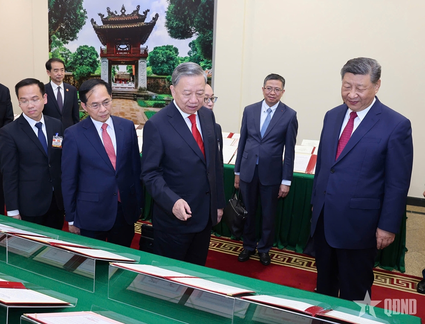 45 văn bản được ký kết nhân chuyến thăm Việt Nam của Tổng Bí thư, Chủ tịch Trung Quốc Tập Cận Bình. Ảnh: Báo Người lao động.