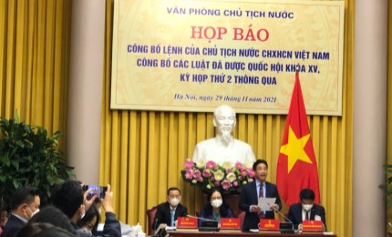 Sáng 29/11, Văn phòng Chủ tịch nước đã tổ chức họp báp công bố Lệnh của Chủ tịch nước công bố các luật vừa mới được Quốc hội thông qua tại kỳ họp thứ 2, Quốc hội khoá XV. Cụ thể, hai bộ gồm: Luật sửa đổi, bổ sung một số điều của Bộ luật Tố tụng Hình sự; Luật sửa đổi, bổ sung một số điều và Phụ lục Danh mục chỉ tiêu thông kê quốc gia của Luật Thống kê.