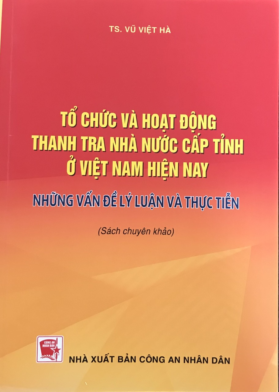 Để có những nghiên cứu, kiến nghị khoa học nhằm kiện toàn tổ chức của ngành Thanh tra tương ứng với chức năng, nhiệm vụ, quyền hạn được giao cũng như đổi mới hoạt động của thanh tra nhà nước cấp tỉnh, Nhà xuất bản Công an nhân dân đã cho xuất bản cuốn sách “Tổ chức và hoạt động thanh tra nhà nước cấp tỉnh ở Việt Nam hiện nay - Những vấn đề lý luận và thực tiễn” do Thiếu tá, TS Vũ Việt Hà, Phó Trưởng Khoa Luật, Học viện Chính trị Công an nhân dân chủ biên, với dung lượng 159 trang, in và xuất bản năm 2020.