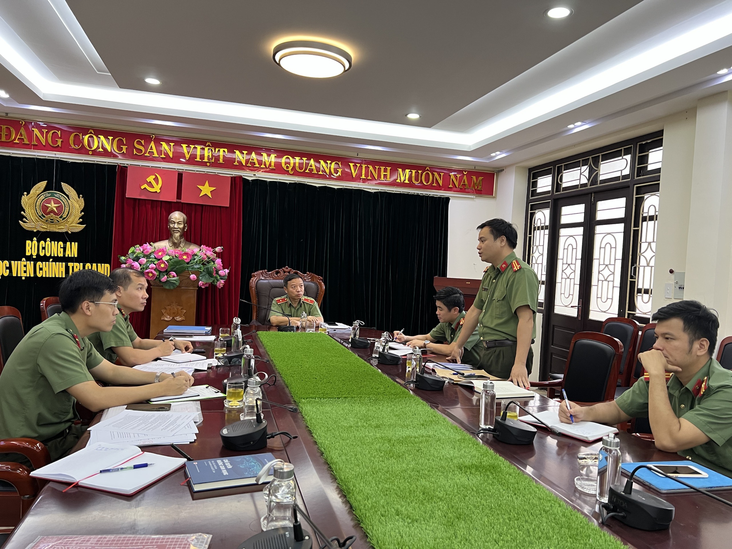 Phát biểu kết luận cuộc họp, đồng chí Thiếu tướng, PGS.TS Phan Xuân Tuy, Phó Trưởng ban Thường trực Ban Chỉ đạo, Trưởng Ban Tổ chức Hội thảo, Giám đốc Học viện yêu cầu Trung tâm Lưu trữ và Thư viện với vai trò thường trực tham mưu giúp Học viện tổ chức Hội thảo cần phối hợp chặt chẽ với các đơn vị thuộc Học viện tập trung làm tốt các nội dung sau: Dự kiến phân công các đơn vị gửi giấy mời và thu bài tham luận phục vụ biên tập hoàn thiện Kỷ yếu Hội thảo; tham mưu văn bản báo cáo Lãnh đạo Bộ Công an về kết quả công tác chuẩn bị và đề xuất các nội dung hoạt động triển khai trước, trong và sau Hội thảo nhằm tuyên truyền và lan tỏa sâu rộng hơn nữa giá trị của cuốn sách, trong đó tập trung vào hoạt động tặng sách và tổ chức nói chuyện chuyên đề về bảo vệ chủ quyền quốc gia trên không gian mạng cho sinh viên một số học viện, trường đại học trong và ngoài ngành Công an khu vực phía Bắc; phối hợp với Văn phòng Bộ Công an kết nối trực tuyến Hội thảo đến Công an các địa phương; trao đổi với Công an các địa phương về những khó khăn, vướng mắc trong triển khai công tác đảm bảo an ninh mạng, bảo vệ chủ quyền quốc gia trên không gian mạng nhằm tập hợp chung cùng với kết quả Hội thảo để báo cáo, đề xuất với Lãnh đạo Bộ Công an về các nội dung có liên quan…