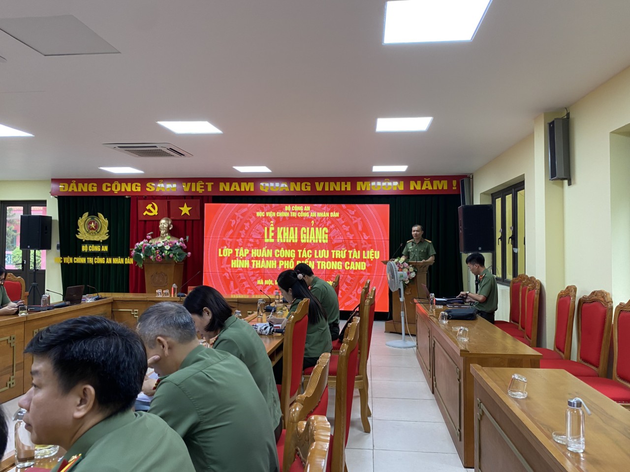 Ngày 12/9/2023, Học viện Chính trị Công an nhân dân tổ chức khai giảng Lớp tập huấn công tác lưu trữ tài liệu hình thành phổ biến trong Công an nhân dân. Dự buổi khai giảng có đại diện lãnh đạo các đơn vị thuộc Học viện; đồng chí Trung tá Lê Quang Trung, báo cáo viên của Cục A03 và hơn 30 cán bộ, giảng viên kiêm nhiệm thực hiện công tác lưu trữ của các đơn vị thuộc Học viện là học viên Lớp tập huấn.
