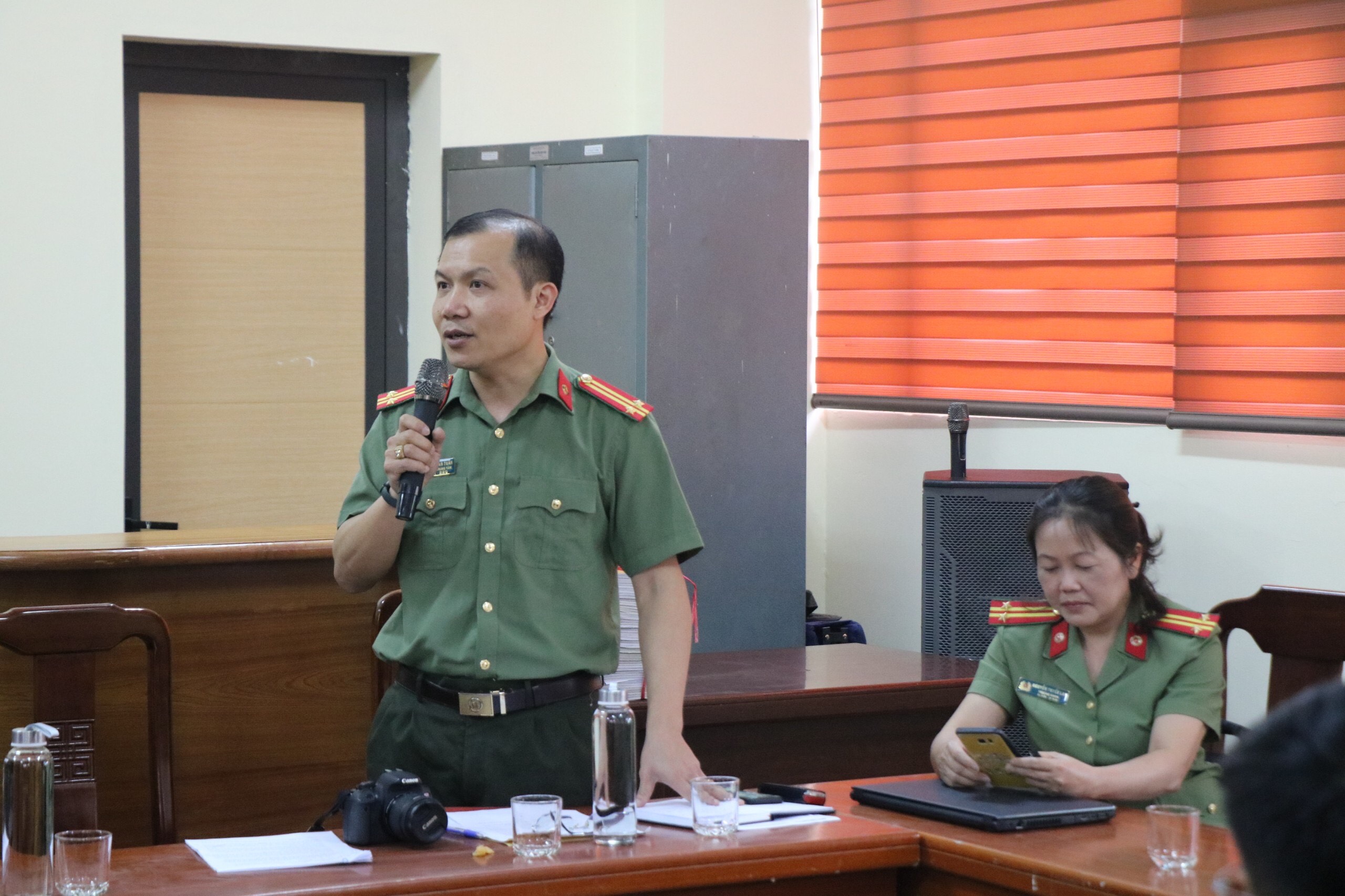 Trung tá, TS Nguyễn Văn Tuấn, Giám đốc Trung tâm Lưu trữ và Thư viện phát biểu tại buổi trao đổi chuyên đề