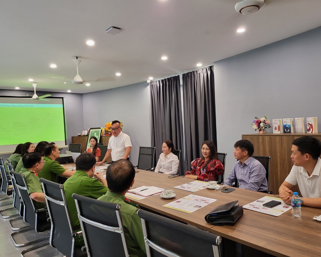 Trong chuyến thăm quan, TS Nguyễn Hoàng Sơn, Giám đốc Trung tâm Thư viện và Tri thức số, Đại học Quốc gia Hà Nội đã giới thiệu khái quát về Thư viện của Đại học Quốc gia Hà Nội. Theo đó, Thư viện đã và đang thực hiện nhiệm vụ cung cấp thông tin và dịch vụ thư viện phục vụ công tác đào tạo, nghiên cứu khoa học, triển khai ứng dụng và quản lý. Thư viện có kho tài liệu nội sinh hết sức đồ sộ, xếp hạng thứ 49/3751 thư viện đại học/học viện, 60/3885 thư viện số toàn cầu. Đặc biệt, Đoàn công tác của các Thư viện trong Công an nhân dân đã tiến hành trao đổi nội dung hợp tác, phối hợp trong xây dựng, chia sẻ các nguồn tài nguyên thông tin, cơ sở dữ liệu, dịch vụ, sản phẩm thông tin, cơ sở dữ liệu, dịch vụ, sản phẩm thông tin thư viện, kinh nghiệm tổ chức, quản trị web thư viện, quản lý thư viện số và một số hoạt động khác. Đây chính là những nội dung quan trọng làm cơ sở đề xuất nội dung hợp tác liên quan đến lĩnh vực thư viện giữa Bộ Công an và Đại học Quốc gia Hà Nội khi tiến hành ký Quy chế phối hợp.