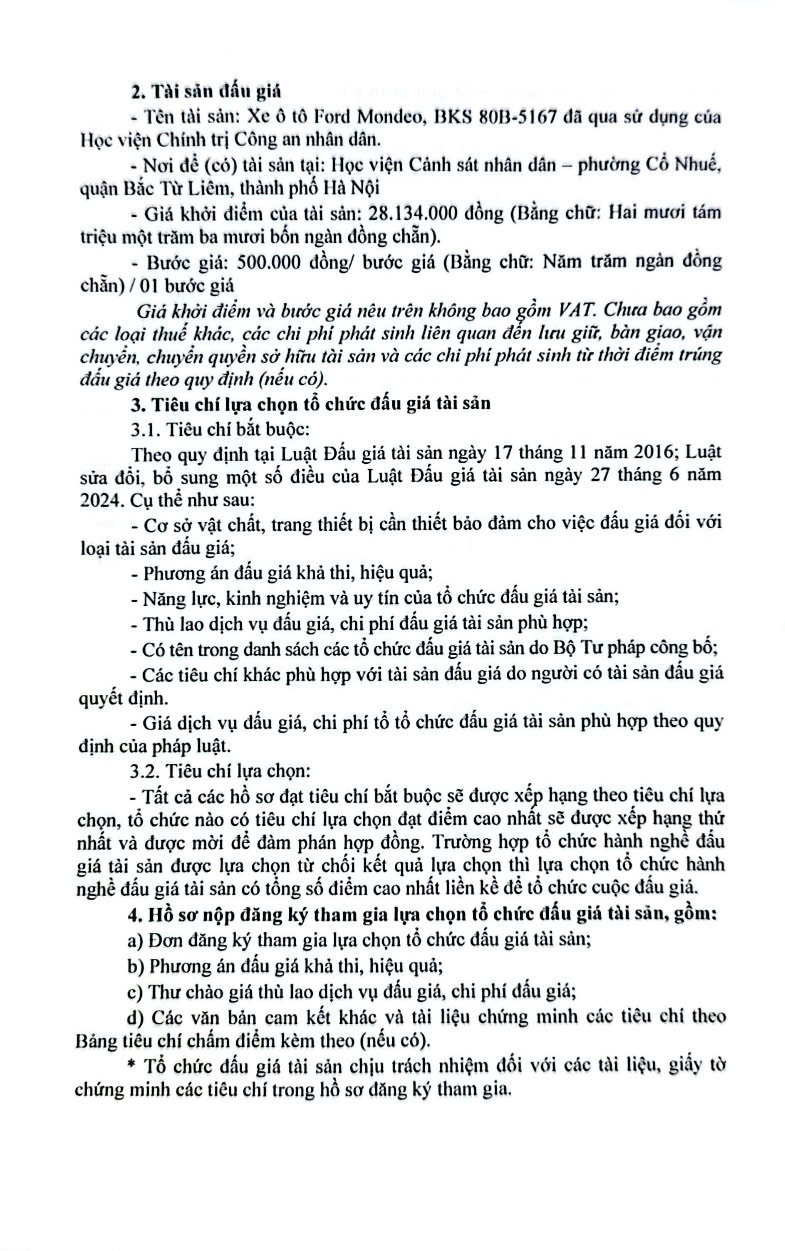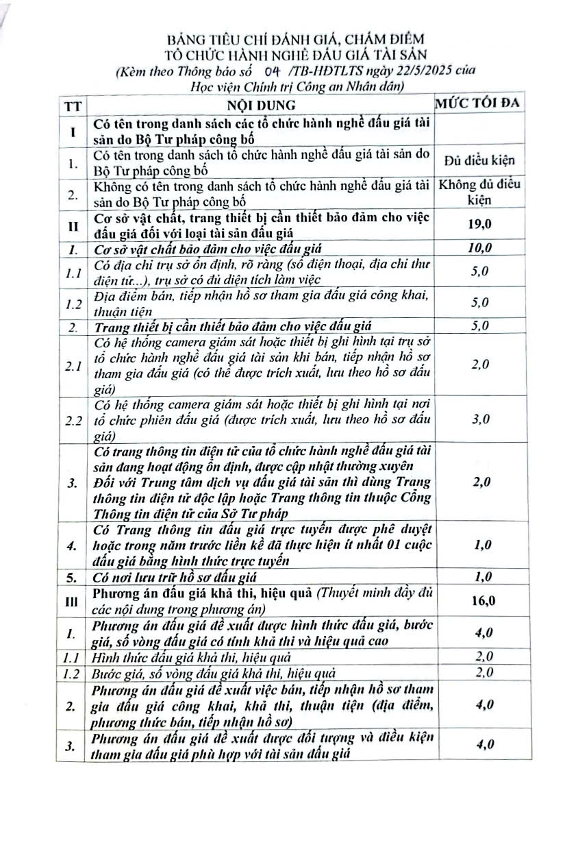 Thông báo về việc lựa chọn tổ chức hành nghề đấu giá tài sản