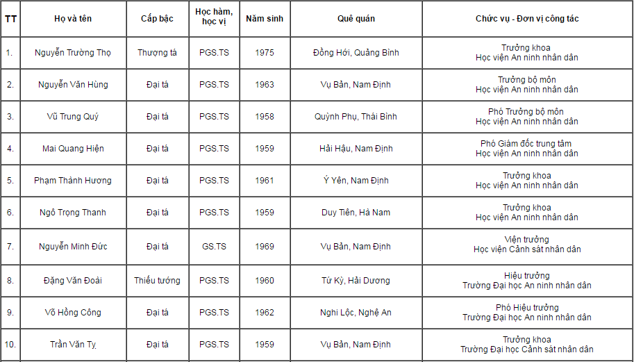 Ngày 28/3/2017, Tổng cục Chính trị Công an nhân dân (CAND) đã có Công văn số 2904 báo cáo và được Thượng tướng Nguyễn Văn Thành, Thứ trưởng Bộ công an, Chủ tịch Hội đồng xét tặng danh hiệu Nhà giáo Nhân dân (NGND), Nhà giáo Ưu tú (NGƯT) Bộ Công an đồng ý phê duyệt và giao Cục Đào tạo phối hợp với Văn phòng Bộ đăng tải danh sách các nhà giáo, cán bộ quản lý giáo dục đề nghị xét tặng danh hiệu NGND, NGƯT trên Cổng Thông tin điện tử của Bộ Công an để lấy ý kiến nhân dân.