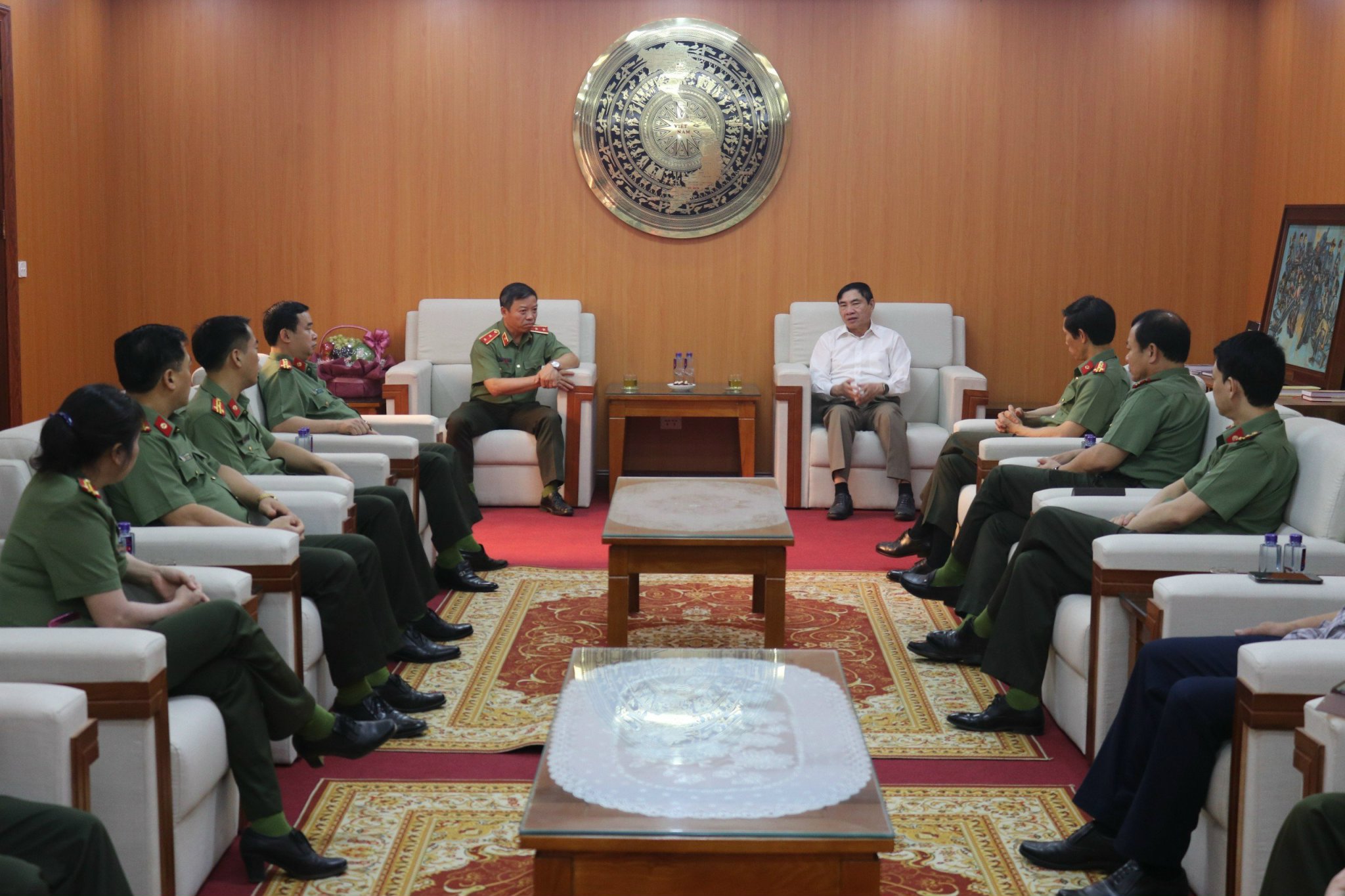 Nhân dịp chuyến công tác tại Điện Biên, sáng ngày 4/4/2024 Đoàn công tác của Đảng ủy Học viện đã đến thăm và có buổi làm việc với đồng chí Trần Quốc Cường, Ủy viên Trung ương Đảng, Bí thư Tình ủy Điện Biên và đồng chí Giám đốc Công an tỉnh Điện Biên. Buổi trao đổi, làm việc diễn ra trong không khí thân tình, cởi mở; theo đó, đồng chí Bí thư Đảng ủy, Giám đốc Học viện đã thay mặt Đoàn công tác báo cáo với đồng chí Bí thư Tỉnh ủy về các nội dung chương trình hoạt động của Học viện Chính trị CAND tổ chức tại Điện Biên hướng đến chào mừng kỷ niệm 70 năm chiến thắng Điện Biên Phủ và nhân kỷ niệm 10 năm ngày thành lập Học viện. Đồng thời, báo cáo sơ bộ các nội liên quan đến công tác giáo dục, đào tạo, thông tin khoa học của Học viện, trong đó có đề cập đến nội dung Học viện đang tham mưu với Lãnh đạo Bộ tổ chức Hội thảo khoa học cấp Bộ: “Cấp uỷ các cấp trong Công an nhân dân lãnh đạo công tác bảo đảm an ninh, trật tự phục vụ phát triển kinh tế - xã hội vùng trung du và miền núi Bắc Bộ theo tinh thần Nghị quyết số 11-NQ/TW, ngày 10/02/2022 của Bộ Chính trị khoá XIII” tại Thái Nguyên và mong muốn đồng chí Bí thư Tỉnh ủy và Đồng chí Giám đốc Công an tỉnh sẽ tham dự và tham gia bài viết kỷ yếu Hội thảo. Thay mặt Đoàn công tác, đồng chí Bí thư Đảng ủy, Giám đốc Học viện trân trọng gửi lời cảm ơn đến đồng chí Bí thư Tỉnh ủy Điện Biên đã dành thời gian, tình cảm đón tiếp Đoàn, cảm ơn Ban Giám đốc Công an tỉnh Điện Biên đã quan tâm, phối hợp, ủng hộ, tạo điều kiện giúp đỡ Đoàn trong quá trình tổ chức các hoạt động tại địa bàn.