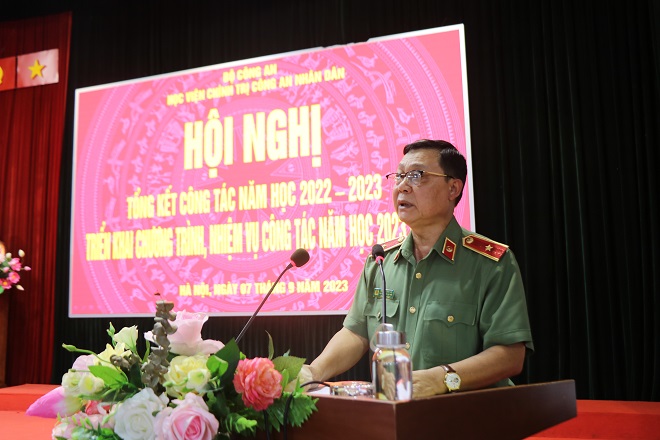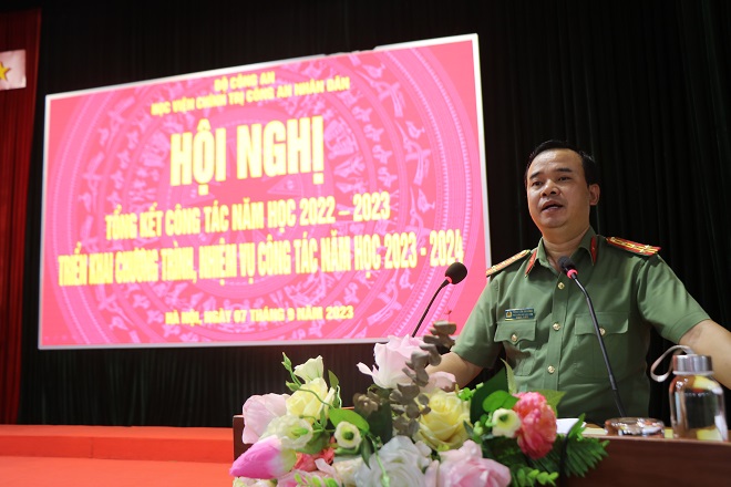 Trên cơ sở Hội nghị tổng kết công tác năm học 2022 - 2023, triển khai chương trình nhiệm vụ năm học 2023 - 2024 trong các học viện, trường Công an nhân dân (CAND) do Bộ Công an tổ chức sáng ngày 30/8/2023; ngày 07/9/2023, Học viện Chính trị CAND tổ chức Hội nghị tổng kết công tác năm học 2022-2023 và triển khai chương trình, nhiệm vụ công tác năm học 2023-2024, đồng chí Trung tướng, PGS. TS Phan Xuân Tuy, Bí thư Đảng ủy, Giám đốc Học viện dự và chủ trì Hội nghị. Tham dự Hội nghị có các đồng chí trong Ban Thường vụ Đảng ủy, Ban Giám đốc Học viện, lãnh đạo các đơn vị cùng toàn thể cán bộ, giảng viên Học viện.