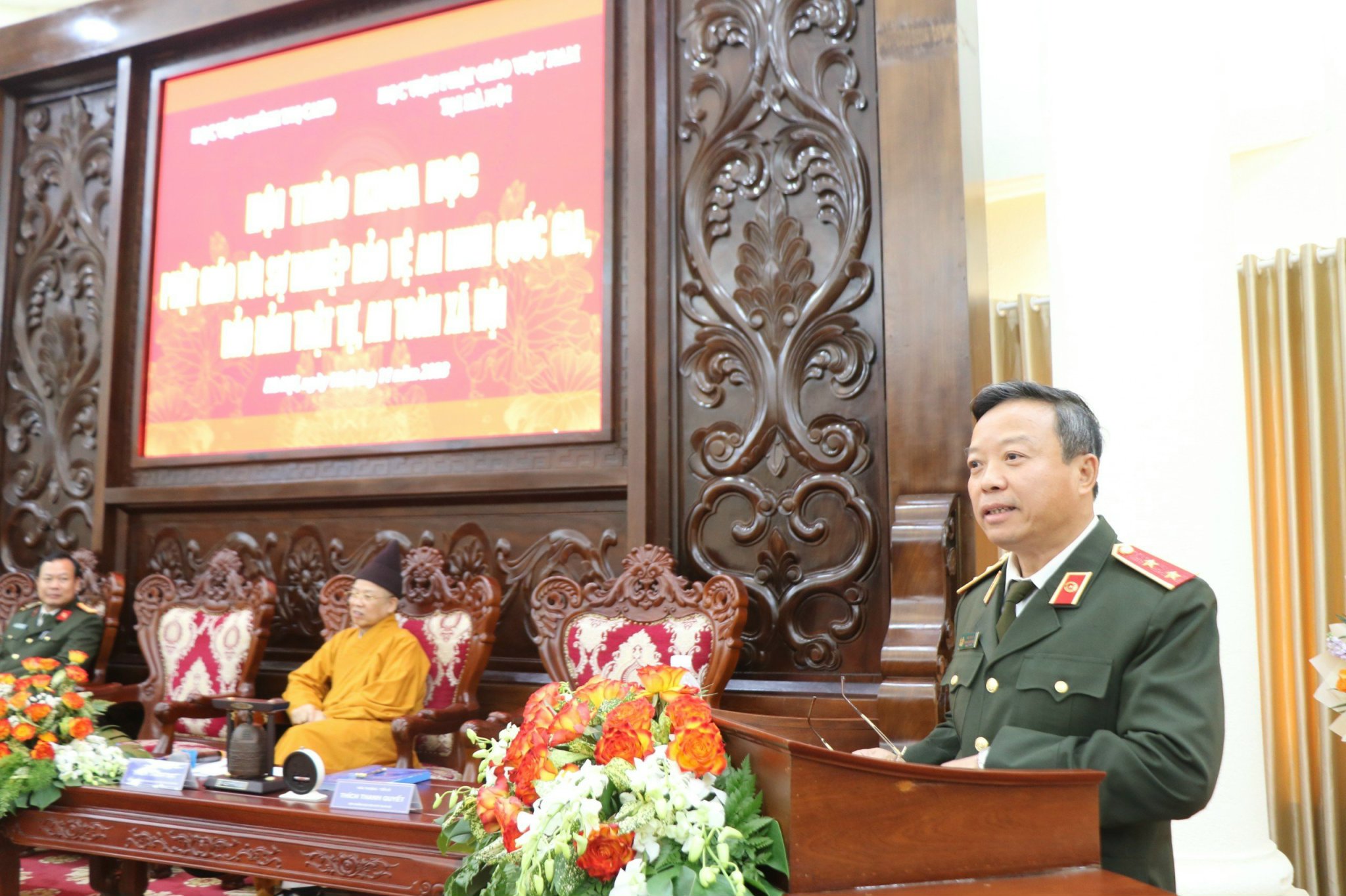 Thay mặt Ban tổ chức, Trung tướng PGS.TS Phan Xuân Tuy, Ủy viên Hội đồng lý luận Bộ Công an, Giám đốc Học viện Chính trị CAND phát biểu tổng kết hội thảo đã khẳng định: Việc tổ chức Hội thảo là rât cần thiết, chủ đề Hội thảo rất quan trọng, thời gian và địa điểm tổ chức Hội thảo có nhiều ý nghĩa; công tác chuẩn bị Hội thảo chu đáo, việc báo cáo và triển khai Hội thảo theo đúng kế hoạch đã được lãnh đạo Bộ Công an và cơ quan chức năng cho ý kiến chỉ đạo; Hội thảo đã nhận được sự quan tâm của các chuyên gia, nhà khoa học, cán bộ thực tiễn, các nhà nghiên cứu của Giáo hội phật giáo Việt Nam, các đơn vị của Bộ Công an, cấp ủy, chính quyền địa phương. Tham luận và phát biểu trực tiếp tại Hội thảo đã phân tích, làm rõ hơn các vấn đề lý luận, thực tiễn về vị trí, vai trò của Phật giáo trong sự nghiệp bảo vệ an ninh quốc gia, bảo đảm trật tự, an toàn xã hội. Khẳng định Phật giáo đã hòa mình cùng văn hóa dân tộc, có vị trí, vai trò quan trọng trong việc huy động các tăng ni, phật tử đồng hành cùng dân tộc, chung tay, góp sức xây dựng, phát triển đất nước, bảo vệ thành quả của sự nghiệp cách mạng dân tộc, kiên định theo phương châm đạo pháp, dân tộc và chủ nghĩa xã hội. Đồng thời, chính qua sự hòa mình vào dân tộc, phát huy truyền thống yêu nước, hộ quốc, an dân, Phật giáo ngày càng có uy tín trong xã hội. Hội thảo cũng khẳng định vai trò nòng cốt của lực lượng CAND trong sự nghiệp bảo vệ an ninh trật tự suốt gần 80 năm qua, vì cuộc sống bình yên, hạnh phúc của Nhân dân và đồng bào theo tôn giáo, trong đó có Phật giáo.