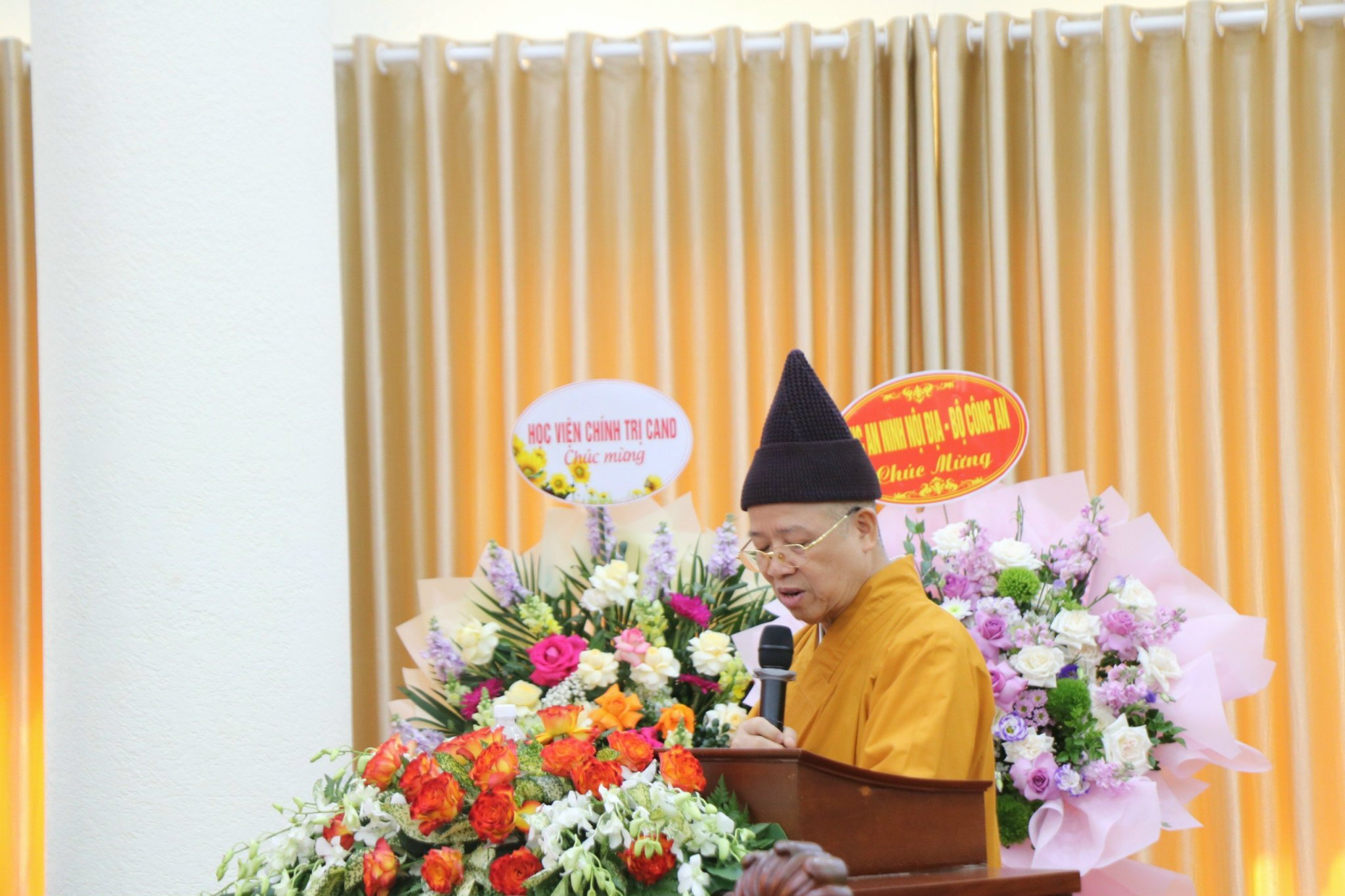 Hòa thượng, TS Thích Thanh Quyết, Phó Chủ tịch Trung ương Giáo hội Phật giáo Việt Nam, Viện trưởng Học viện Phật giáo Việt Nam tại Hà Nội phát biểu tại Hội thảo