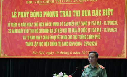 Học viện Chính trị CAND phát động phong trào thi đua đặc biệt hướng tới kỷ niệm 75 năm Ngày Chủ tịch Hồ Chí Minh có Sáu điều dạy CAND (11/3/1948-11/3/2023), 75 năm Ngày Chủ tịch Hồ Chí Minh ra Lời kêu gọi thi đua ái quốc (11/6/1948-11/6/2023) và kỷ niệm 10 năm Ngày công bố quyết định của Thủ tướng Chính phủ thành lập Học viện Chính trị CAND (25/4/2014-25/4/2024)