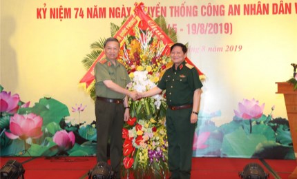Phát biểu tại buổi gặp mặt, Bộ trưởng Tô Lâm nêu rõ, ngày 19/8/1945, lực lượng CAND Việt Nam ra đời trong khí thế thắng lợi của cuộc Cách mạng Tháng Tám vĩ đại là dấu mốc lịch sử quan trọng trong sự nghiệp bảo vệ an ninh, trật tự của đất nước. Trong suốt 74 năm qua, dưới sự lãnh đạo của Đảng và Bác Hồ kính yêu, CAND Việt Nam luôn luôn kề vai sát cánh cùng các lực lượng cách mạng và nhân dân kiên cường đấu tranh, mưu trí, dũng cảm, làm thất bại mọi âm mưu, hoạt động của các thế lực thù địch, phản động và các loại tội phạm, bảo vệ Đảng, bảo vệ Nhà nước, bảo vệ thành quả cách mạng của đất nước và bình yên, hạnh phúc của nhân dân.