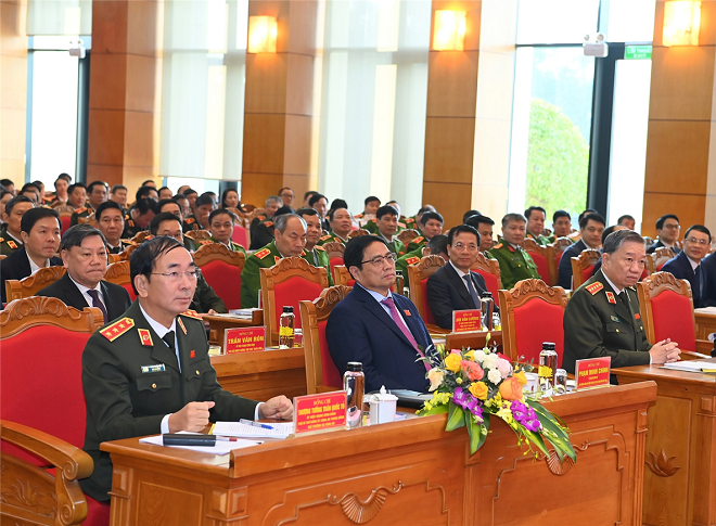 Phát biểu tại Hội nghị, đồng chí Nguyễn Hòa Bình, Ủy viên Bộ Chính trị, Chánh án Tòa án nhân dân tối cao và đồng chí Lê Minh Trí, Ủy viên Trung ương Đảng, Viện trưởng Viện kiểm sát nhân dân tối cao chúc mừng những chiến công, thành tích của lực lượng CAND đạt được trong thời gian qua. Đồng thời nhấn mạnh, những kết quả, thành tích đó là nền tảng vững chắc để góp phần phát triển kinh tế, xã hội của đất nước, người dân được thụ hưởng cuộc sống bình an, ấm no, hạnh phúc; bảo đảm môi trường đầu tư cho các nhà đầu tư quốc tế vào Việt Nam. Hai đồng chí cũng đánh giá cao công tác phối hợp chặt chẽ của lực lượng CAND với Viện kiểm sát nhân dân, Tòa án nhân dân các cấp, đã góp phần đảm bảo tính nhân văn và sự nghiêm minh của pháp luật. Hai đồng chí bày tỏ mong muốn, thời gian tới, 03 cơ quan tư pháp tiếp tục phát huy những thành tích đạt được, phối hợp chặt chẽ, để hoàn thành tốt nhiệm vụ chính trị mà Đảng, Nhà nước và Nhân dân giao phó.