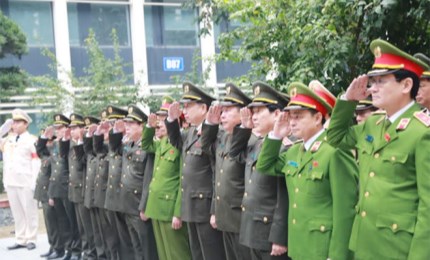 | Thứ trưởng Bùi Văn Nam trao Cờ thi đua của Bộ Công an tặng các tập thể có thành tích xuất sắc trong năm 2017. |