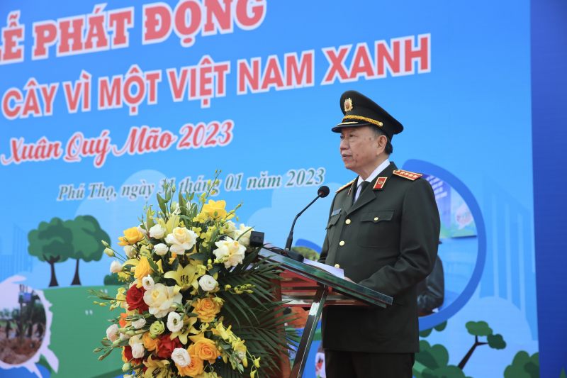 Bộ trưởng Tô Lâm phát biểu phát động “Tết trồng cây - Vì một Việt Nam xanh” Xuân Quý Mão năm 2023 của Bộ Công an.