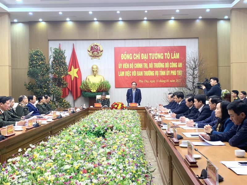 Phát biểu tại buổi làm việc, Bộ trưởng khẳng định, trong thành tích chung của lực lượng CAND, có đóng góp quan trọng của CBCS Công an tỉnh Phú Thọ. Nổi bật, an ninh quốc gia được giữ vững trong mọi tình huống, tình hình ANTT được chuyển biến tốt hơn nhiều so với năm 2021 và những năm trước đây, tình hình tội phạm về trật tự xã hội giảm. Trong đó, vai trò của lực lượng Công an xã thể hiện đậm nét trong việc tham gia gìn giữ ANTT, kịp thời giải quyết các vấn đề phức tạp ngay từ cơ sở.