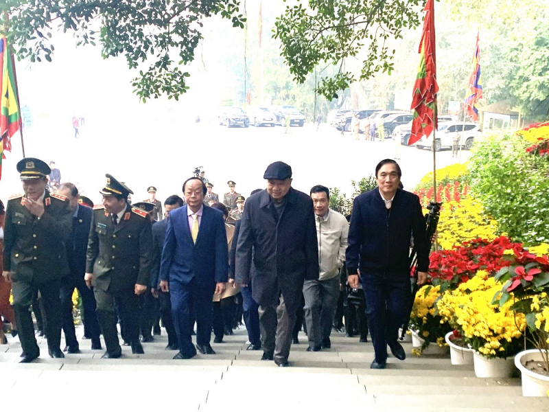 Bộ trưởng Tô Lâm, Bí thư Tỉnh uỷ Bùi Minh Châu và các đại biểu đến thăm Khu Di tích lịch sử Đền Hùng.