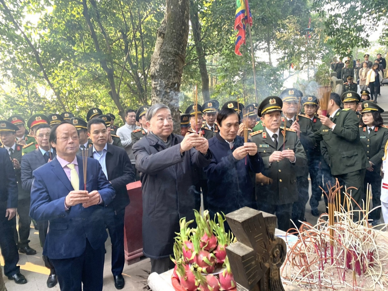 Trước đó, sáng cùng ngày, Bộ trưởng Tô Lâm đã chủ trì Lễ dâng hương và trồng cây lưu niệm tại Khu Di tích lịch sử quốc gia Đền Hùng.