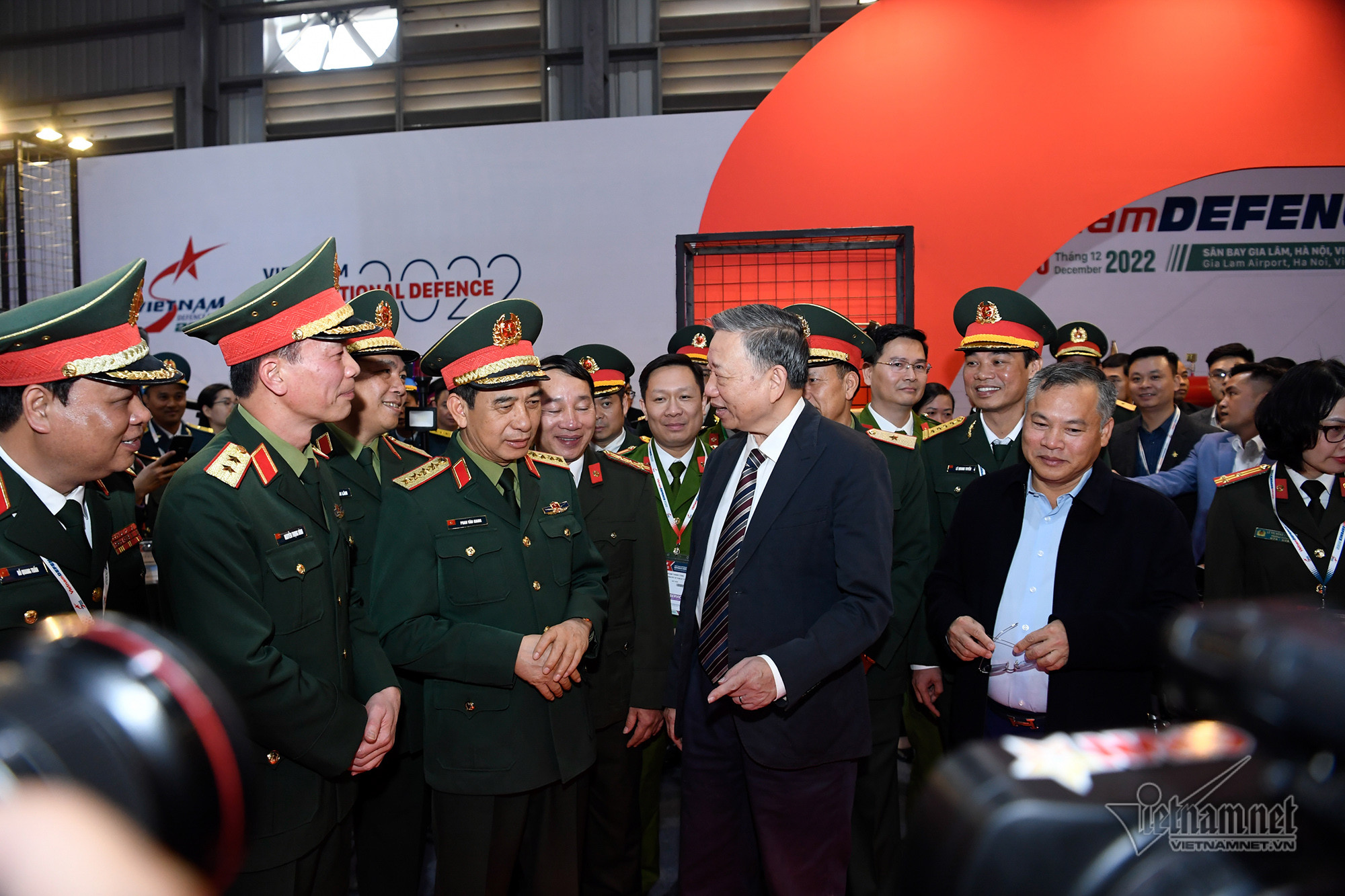 Chiều 08/12/2022, Đại tướng Tô Lâm, Ủy viên Bộ Chính trị, Bộ trưởng Bộ Công an và Đại tướng Phan Văn Giang, Uỷ viên Bộ Chính trị, Bộ trưởng Bộ Quốc phòng cùng Đoàn công tác của 02 Bộ đã đến tham quan một số gian hàng tham gia Triển lãm quốc phòng quốc tế Việt Nam 2022.