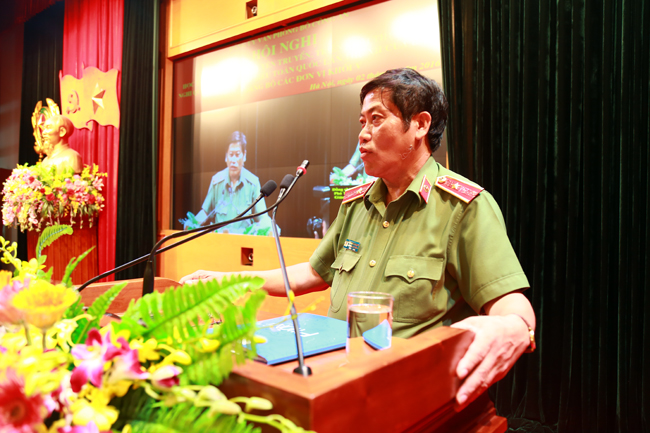 Thiếu tướng Hoàng Tiến Hiểu, Phó Bí thư Đảng ủy, Phó Chánh Văn phòng Bộ phát biểu khai mạc tại Hội nghị.