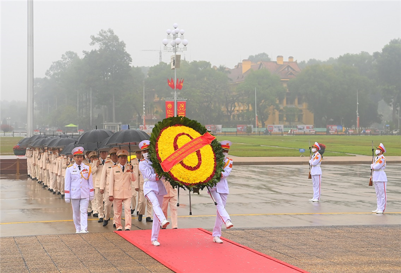 Đoàn đại biểu Đảng ủy Công an Trung ương, Bộ Công an đã đặt vòng hoa, vào Lăng viếng Chủ tịch Hồ Chí Minh; thành kính bày tỏ lòng biết ơn vô hạn đối với Chủ tịch Hồ Chí Minh, vị lãnh tụ thiên tài, người sáng lập và rèn luyện Đảng ta cũng như công lao to lớn của Người đối với sự nghiệp cách mạng vẻ vang của Đảng và dân tộc, trong đó có lực lượng Công an nhân dân.